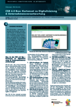 CSR 4.0 Box – Kartenset zu Digitalisierung & Unternehmensverantwortung (148_Betriebsräte - PDF) Die CSR 4.0 Box – Kartenset unterstützt Betriebsräte, zentrale CSR-Themen im Betrieb strukturiert zu erfassen und einzuordnen. In fünf kompakten Kartensätzen vermittelt sie Grundlagen, Handlungsfelder, Praxisbeispiele sowie Aspekte der CSR-Kommunikation und digitalen Verantwortung. Gemeinsam mit den Führungskräften können Betriebsräte CSR Themen erfassen und beschäftigtenorientiert, zukunftssicher und produktivitätssteigernd im Betrieb angehen. -