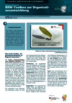 RKW-Toolbox zur Organisationsentwicklung (107_Betriebsräte - PDF) Die Toolbox „Organisationsabenteuer erfolgreich bestreiten“ bietet einen Überblick über Tools und Methoden, die im Kontext der Organisationsentwicklung oder auch in betrieblichen Krisensituationen genutzt werden können. Die entsprechenden Methoden werden kurz erläutert und visuell dargestellt, sodass ein Eindruck für eine mögliche Anwendung entsteht. -
