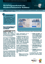Nachfolgewerkstatt (060_Betriebsräte - PDF) Die Nachfolgewerkstatt der Handwerkskammer Koblenz richtet sich an Betriebe, die in naher Zukunft eine Betriebsnachfolge suchen und an potenzielle neue Betriebsinhaberinnen und -inhaber. -