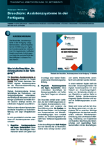 Broschüre Assistenzsysteme in der Fertigung (103_Betriebsräte - PDF) Die Broschüre „Assistenzsysteme in der Fertigung“ zeigt Betriebsräten, welche Aspekte bei der Einführung von digitalen Assistenzsystemen relevant sind. Ein begleitender Leitfaden bietet praxisnahe Anleitungen und hebt die zentrale Rolle der Beschäftigten in diesem Prozess hervor. -