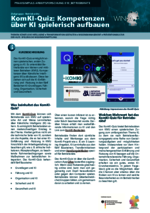 KomKIQuiz (010_Betriebsräte - PDF) Das KomKI-Quiz ermöglicht einen spielerischen, ersten Zu-gang zu KI. Es unterstützt Betriebsräte von kleinen und mittleren Betrieben (KMU), Kompetenzen über Künstliche Intelligenz (KI) aufzubauen. Diese beziehen sich auf die KI-Einführung und -Nutzung in den fünf Bereichen KI-Grundlagen, Führung, Organisation, Sicherheit und Gesundheit -