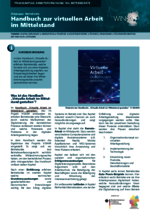 Handbuch virtuelle Arbeit im Mittelstand (104_Betriebsräte - PDF) In dem Handbuch „Virtuelle Arbeit im Mittelstand gestalten“ erfahren Betriebsräte, welche Vorteile sich aus einer digitalen Arbeitsgestaltung ergeben, wo Einsatzmöglichkeiten liegen und wie sie dabei ihre Mitbestimmungsrechte proaktiv wahrnehmen können. -