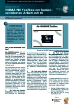 HUMAINE Toolbox zur humanzentrierten Arbeit mit KI (100_Betribsräte - PDF) Die HUMAINE Toolbox ist ein praktischer Methoden-Werkzeugkasten, der Betriebsräte dabei unterstützen kann, die Einführung und Nutzung von Künstlicher Intelligenz (KI) in Arbeitsprozessen im Sinne eines humanenzentrierten Ansatzes zu gestalten. -