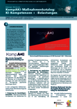 KompAKI-Maßnahmenkatalog (049_Betriebsräte - PDF) Mit dem Maßnahmenkatalog zu Kompetenzen und Belastung bei Anwendungen mit künstlicher Intelligenz (KI) des Kompetenzzentrums KompAKI lernen Betriebsräte kurz und kompakt nötige Kompetenzen und präventive Maßnahmen kennen, die Beschäftigte bei der Nutzung von KI-Anwendungen unterstützen und zur Reduktion von psychischen Belastungen beitragen. -