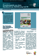 Handwerk (018_Betriebsräte - PDF) In der Praxisbroschüre „Hand-werksbetriebe auf dem Weg in die Arbeitswelt 4.0“ erfahren Betriebsräte, wie Künstliche Intelligenz (KI) im Betrieb sicher, gesund und produktiv eingeführt werden kann. Die Praxisbroschüre unterstützt, die Auswirkungen von KI besser einschätzen zu können. -