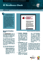 KI-Readiness-Check (003_Betriebsräte - PDF) Der KIRC (KI-Readiness-Check) ist ein fragebogenbasiertes Selbstbewertungsinstrument zur Beurteilung der eigenen Kompetenz, Anwendungen der Künstlichen Intelligenz (KI) im Betrieb erfolgreich einzuführen. -
