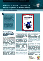 KI-Einsatz im Betrieb (151_Betriebsräte - PDF) Die INQA-Broschüre „KI-Einsatz im Betrieb – Antworten auf häufige Fragen zur KI-Mitbestimmung“ fasst wichtige Informationen rund um das Betriebsverfassungsgesetz, die Datenschutz-Grundverordnung und das Bundesdatenschutzgesetz für Betriebsräte zusammen. Betriebsräte können sich mit Hilfe der Broschüre über ihre Mitbestimmungsrechte rund um den Einsatz Künstlicher Intelligenz im Betrieb informieren und den Einsatz der Technologie aktiv mitgestalten. -