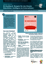 KI-Kochbuch (012_Betriebsräte - PDF) Das KI-Kochbuch ermöglicht Betriebsräten von kleinen und mittleren Unternehmen (KMU) einen praxisnahen Einstieg in die Welt der Künstlichen Intelligenz (KI). Es enthält Anwendungs- und Praxisbeispiele sowie eine Schritt-für-Schritt Anleitung zur Integration von KI-Anwendungen in bestehende Prozesse. -