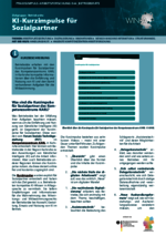 ArbeitsweltPlus: Selbstlerneinheit KI (037_Betriebsräte - PDF) Das Kompetenzzentrum Arbeitswelt.Plus bietet eine Selbstlerneinheit zur Künstlichen Intelligenz an. Mithilfe dieser Selbstlerneinheit können Betriebsräte und andere Beschäftigte zeit- und ortsunabhängig Grundkenntnisse über KI erwerben. Sie lernen auch Potenziale und Gestaltungsmöglichkeiten von KI kennen. Das hilft bei einer produktiven Einführung von KI im Betrieb. -