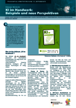 KI im Handwerk (153_Betriebsräte - PDF) Der Infotext „KI im Handwerk“ enthält eine Vielzahl an Praxisbeispielen. Er zeigt wie unterschiedliche Handwerksbetriebe Künstliche Intelligenz und digitale Technologien in ihrem Betriebsalltag einsetzen und welche Vorteile sich daraus ergeben. Betriebsräte können sich mit den Beispielen in das Thema einarbeiten und erfahren, wo KI-Einsatzgebiete liegen. -
