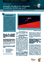 KompAKI Handbuch zur mitarbeiterfreundlichen Implementierung von KI im Unternehmen (115_Betriebsräte - PDF) Das „KompAKI Handbuch zur mitarbeiterfreundlichen Implementierung von KI im Unternehmen“ unterstützt Betriebsräte, die Einführung von KI-Arbeitssystemen im Sinne der Beschäftigten zu begleiten und mitzugestalten. Es bietet eine Orientierung entlang aller Phasen des Implementierungsprozesses und hilft dabei, die Auswirkungen auf die Arbeitsbedingungen frühzeitig zu erkennen, die Interessen der Beschäftigten zu vertreten und ihre Perspektive in den Gestaltungsprozess einzubeziehen. -
