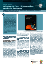 KI-Anwendungen in der Fertigung Arbeitswelt.Plus (123_Betriebsräte - PDF) Das Working Paper „KI-Anwendungen in der Fertigung“ unterstützt Betriebsräte dabei, den Einsatz von Künstlicher Intelligenz (KI) im Betrieb zu begleiten und mitzugestalten. Es bietet praxisnahe Orientierung zu technischen, organisatorischen und sozialen Aspekten – von der Auswahl geeigneter Anwendungen über Qualifizierungsmaßnahmen bis hin zu Fragen von Datenschutz und Mitbestimmung. So können Betriebsräte die Interessen der Beschäftigten im digitalen Wandel gezielt vertreten und Veränderungen mitgestalten. -